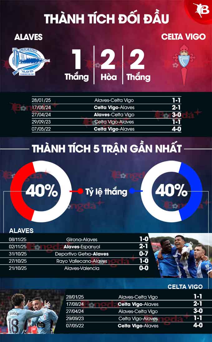 Celta đã thắng 6 trong 10 lần gặp nhau gần nhất giữa hai đội, trong khi Alaves thắng 2 và 2 trận còn lại kết thúc với tỷ số hòa.