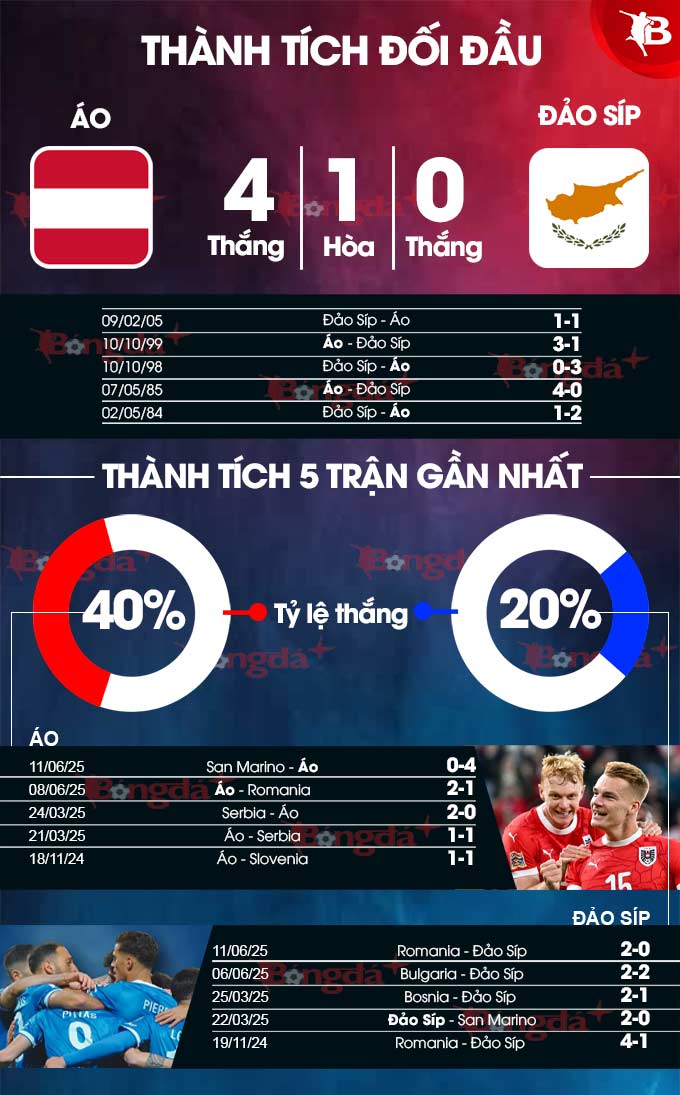 Phân tích phong độ Áo vs Đảo Síp