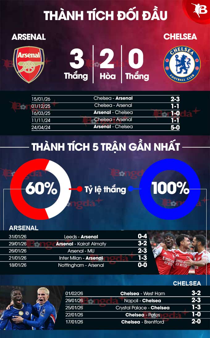 Phân tích phong độ Arsenal vs Chelsea