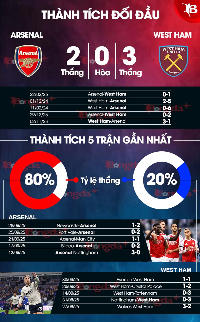 Đáng chú ý, đối thủ của Arsenal đang không có phong độ tốt. West Ham đang có sự khởi đầu vô cùng tệ tại giải Ngoại hạng Anh. Sau 6 vòng đấu, họ mới giành được 1 chiến thắng, còn lại hòa 1 và phải nhận 4 thất bại. Qua đó, đội bóng có biệt danh Búa tạ đang lặn ngụp ở vị trí thứ 2 từ dưới lên tại bảng xếp hạng. Đây có thể xem là cơ hội để đoàn quân của ông Mikel Arteta tiếp tục nối dài những ngày vui và hy vọng vươn lên vị trí số 1 tại Premier League.
