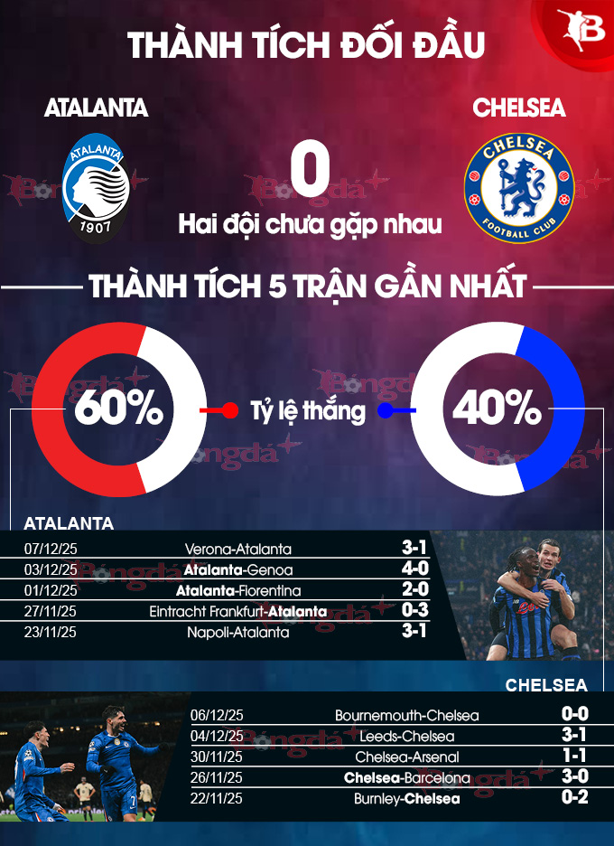 Họ đã thể dấu ấn của mình bằng sự kiên cường và kỷ luật chiến thuật, đồng thời chứng tỏ mình là một đối thủ khó nhằn trên sân nhà tại các giải đấu châu lục, khi duy trì thành tích bất bại với một chiến thắng và một trận hòa sau hai trận tại New Balance Arena. Phong độ gần đây của Atalanta rất đáng khích lệ. Trước khi để thua Verona 1-3 tại Serie A, thày trò HLV Palladino có 3 trận toàn thắng trên mọi đấu trường để củng cố đáng kể sự tự tin của họ trước trận đấu quan trọng trên sân nhà với Chelsea.