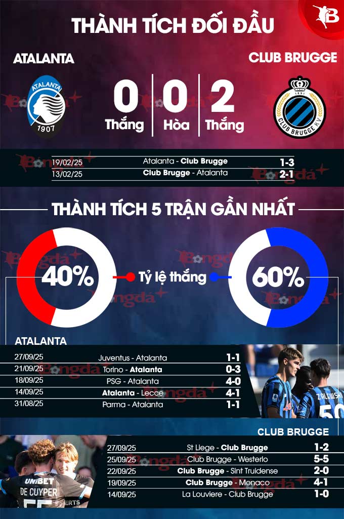 Phân tích dữ liệu chuyên sâu Atalanta vs Club Brugge