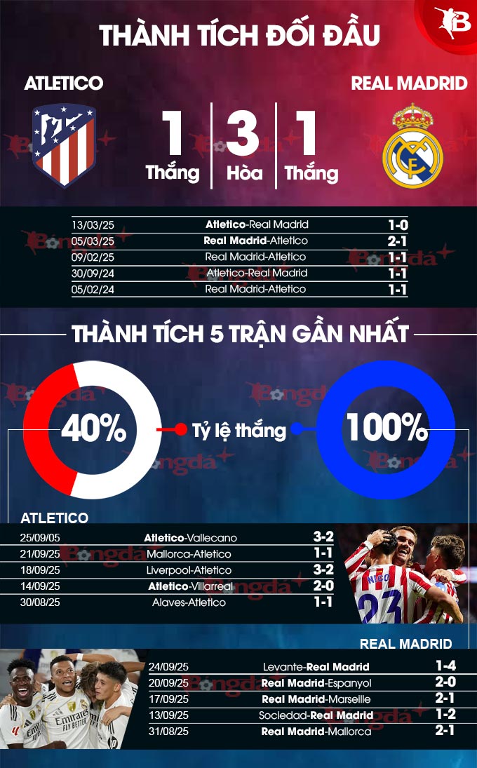 Tuy Atletico gần đây có chút dấu hiệu khởi sắc, nhưng nhìn chung họ vẫn thiếu thuyết phục. Theo thống kê, tính từ khi mùa giải 2025/26 khởi tranh đến giờ, qua 7 trận đấu, nửa đỏ thắng thành Madrid mới giành được 2 chiến thắng, gần nhất là trận thắng 3-2 trước đội khách Vallecano.