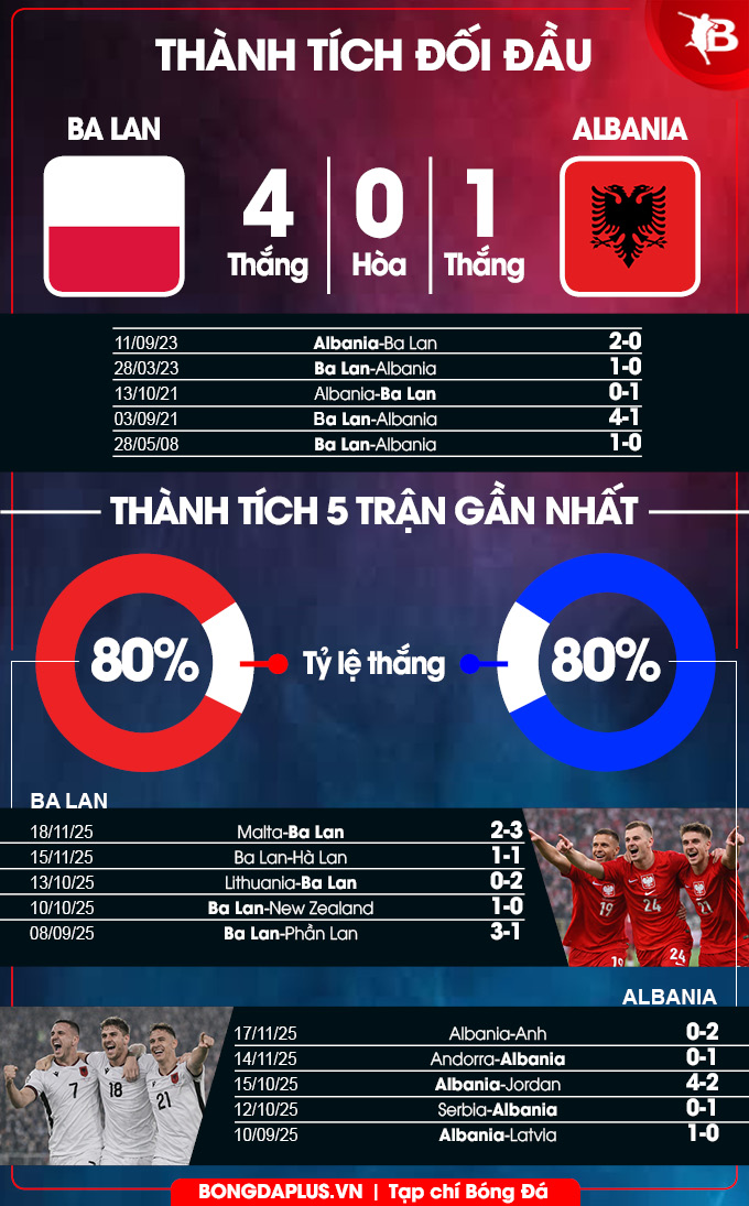 Được chơi trân sân nhà, thành tích đối đầu áp đảo hoàn toàn và có lực lượng vượt trội, "Đại bàng trắng" Ba Lan sẽ vượt qua Albania để giành vé vào chơi ở một trong những trận chung kết tranh suất dự vòng chung kết World Cup 2026 tại vòng loại khu vực châu Âu.