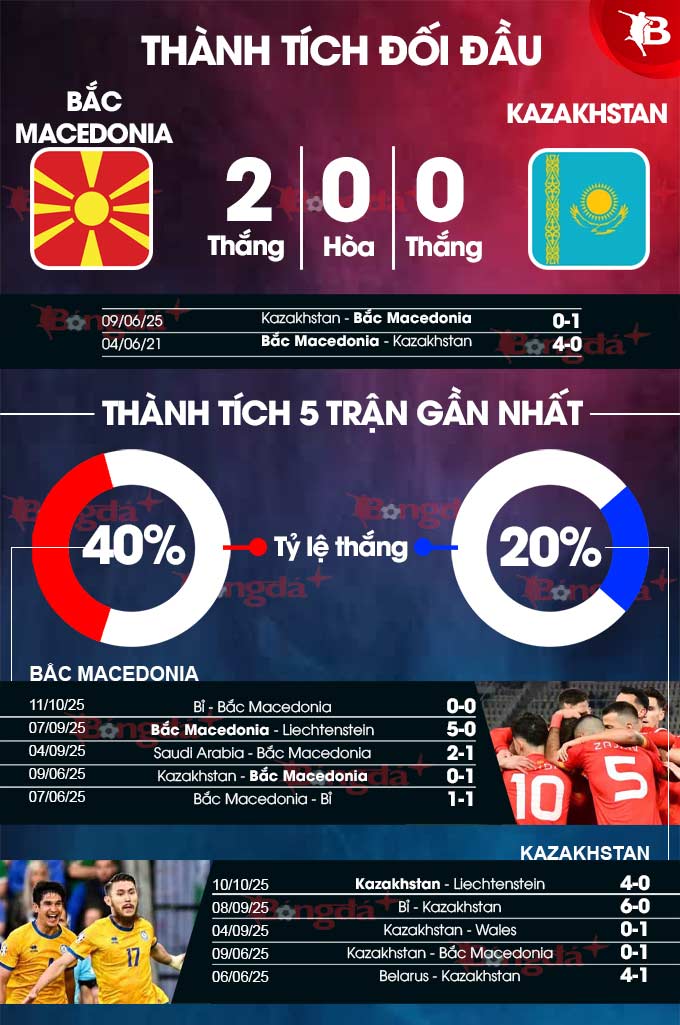 Trước mắt là phải đánh bại Bắc Macedonia, nhưng đây có lẽ là nhiệm vụ bất khả thi đối với Kazakhstan, khi thành tích sân khách của đội bóng này là rất tệ với vỏn vẹn 1 chiến thắng ở 12 trận gần nhất, trong đó để thua tới 10 trận. Chưa kể, Kazakhstan cũng toàn thua cả 2 trận đối đầu trong quá khứ, bao gồm thất bại tối thiểu ở lượt đi trên sân nhà.