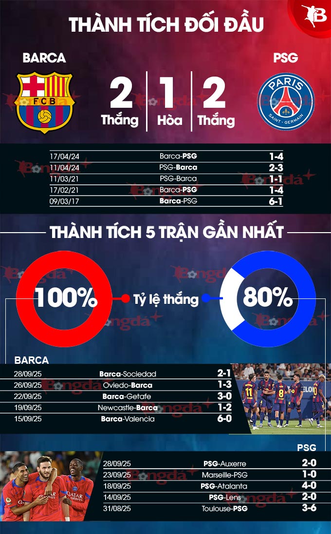 Đây là cuộc thư hùng ngang sức ngang T về mọi mặt. Xét về đối đầu, Barca và PSG cân bằng tuyệt đối. Cả hai đội đều có 5 chiến thắng và 4 trận hòa sau 14 lần đụng độ tại các sân chơi châu Âu (đều ở Champions League). Họ cùng ghi được 27 bàn thắng và để thủng lưới 27 bàn.