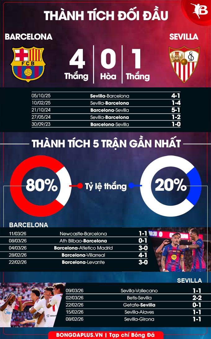 Phong độ bùng nổ trên sân nhà với 14 trận liên tiếp toàn thắng giúp Barca có được sự tự tin cần thiết để diệt gọn "con mồi" quen mang tên Sevilla, đội đã gục ngã ở 18 trong 20 lần (2 hòa) gần nhất viếng thăm thánh địa Camp Nou.