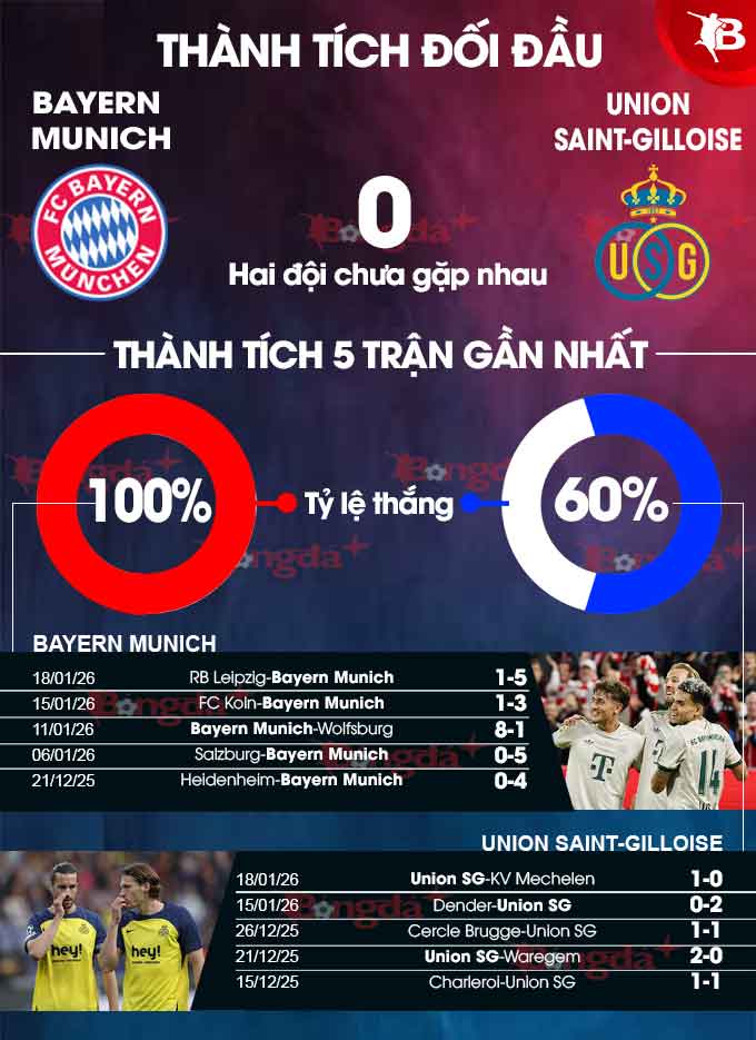 Khởi đầu hoàn hảo của Bayern trong năm 2026 dường như sẽ tiếp tục ở trận đấu này, với sức mạnh tấn công không thể cản phá của họ nhiều khả năng sẽ gây khó khăn cho một đội Union SG đã để thủng lưới 15 bàn trong mùa giải Champions League này.