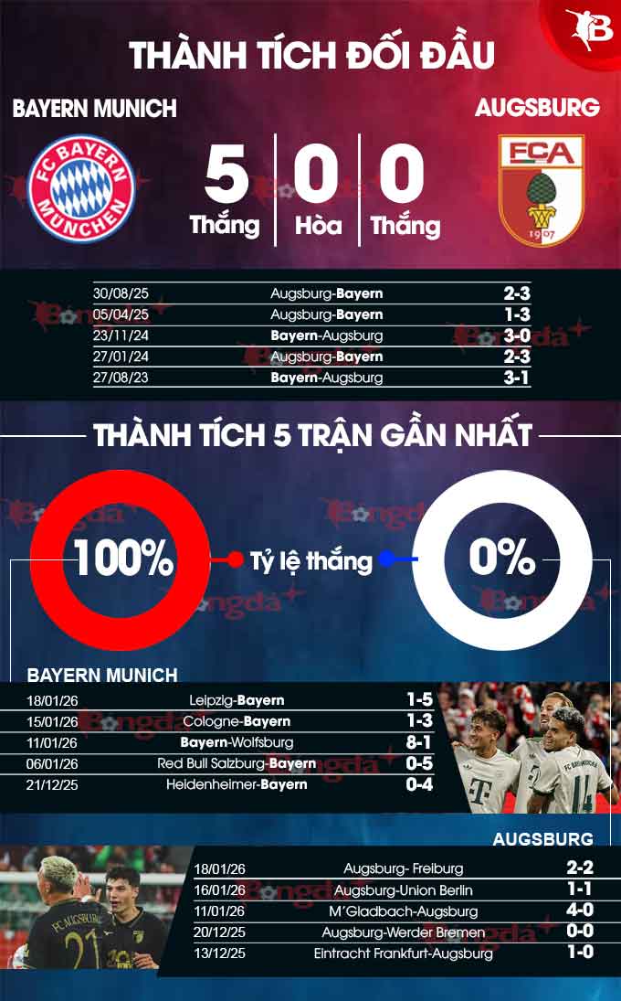 Chuỗi thành tích nghèo nàn đó là lý do Augsburg đang xếp tận vị trí thứ 15 ở Bundesliga, hơn nhóm "cầm đèn đỏ" có 4 điểm. Căn cứ vào thực tế trên, rất khó để tin rằng Augsburg có thể tránh được thất bại dưới tay Bayern đã thắng họ 8 trận liên tiếp.