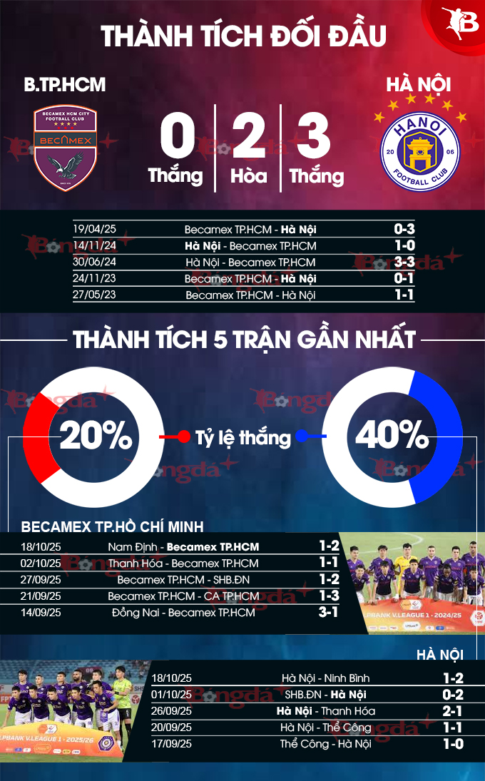 Phân tích phong độ Becamex TP.HCM vs Hà Nội