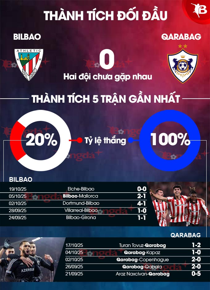 - Lẻ bàn thắng: 3/4 trận đấu gần đây của Bilbao kết thúc với tổng số bàn thắng là số lẻ. 8/10 trận gần nhất của Qarabag xảy ra tình trạng tương tự.