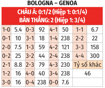 Ít bàn thắng là điều dễ xảy ra. Cửa Genoa thắng theo châu á và Bologna đè phạt góc là một combo kết hợp chặt với nhau.