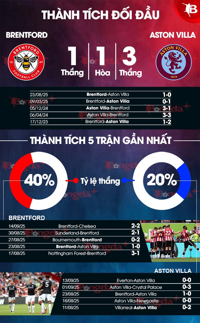 Tóm lại, đây là trận đấu mà khả năng giành chiến thắng của Brentford là rất lớn. Nên nhớ rằng, trong trận đấu diễn ra cách đây chưa đầy 1 tháng ở Gtech Community, Brentford cũng đã đánh bại Aston Villa nhờ bàn thắng duy nhất của Dango Ouattara. Và đó là chiến thắng thứ 5 trong 8 lần Brentford nghênh đón Aston Villa gần đây (còn lại hòa 1 và Aston Villa thắng 2 trận).