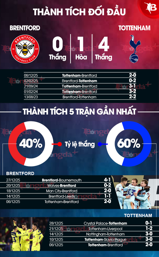 Thắng lợi nhọc nhằn 1-0 trên sân của Crystal Palace ở vòng đấu trước thực tế mới là lần đầu tiên Gà trống được ca khúc khải hoàn, sau chuỗi 5 trận liên tiếp không thắng tại sào huyệt đối phương. Có thể, Tottenham còn được lịch sử ủng hộ, khi toàn thắng 4 trận gặp Brentford gần nhất ở Premier League, nhưng với bối cảnh như hiện tại thì chỉ cần kiếm được 1 điểm tại Gtech Community cũng có thể xem là thành công với họ.