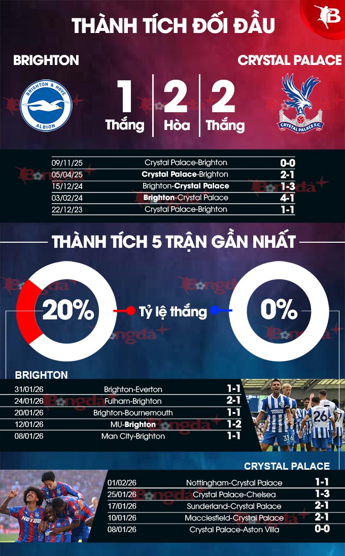 Phân tích phong độ Brighton vs Crystal Palace