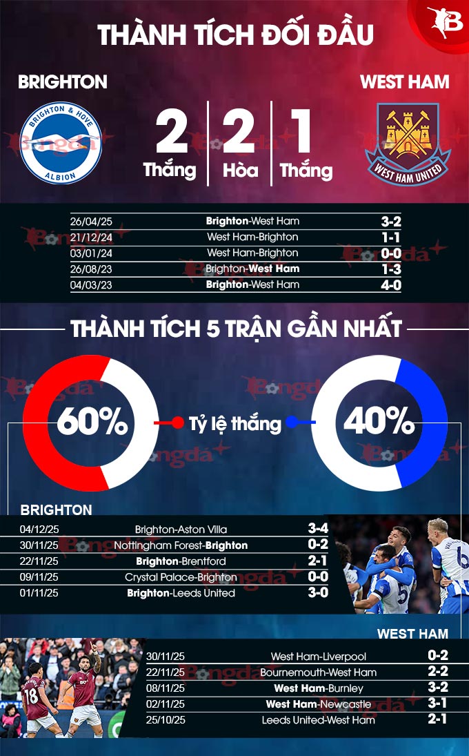 Phân tích phong độ Brighton vs West Ham