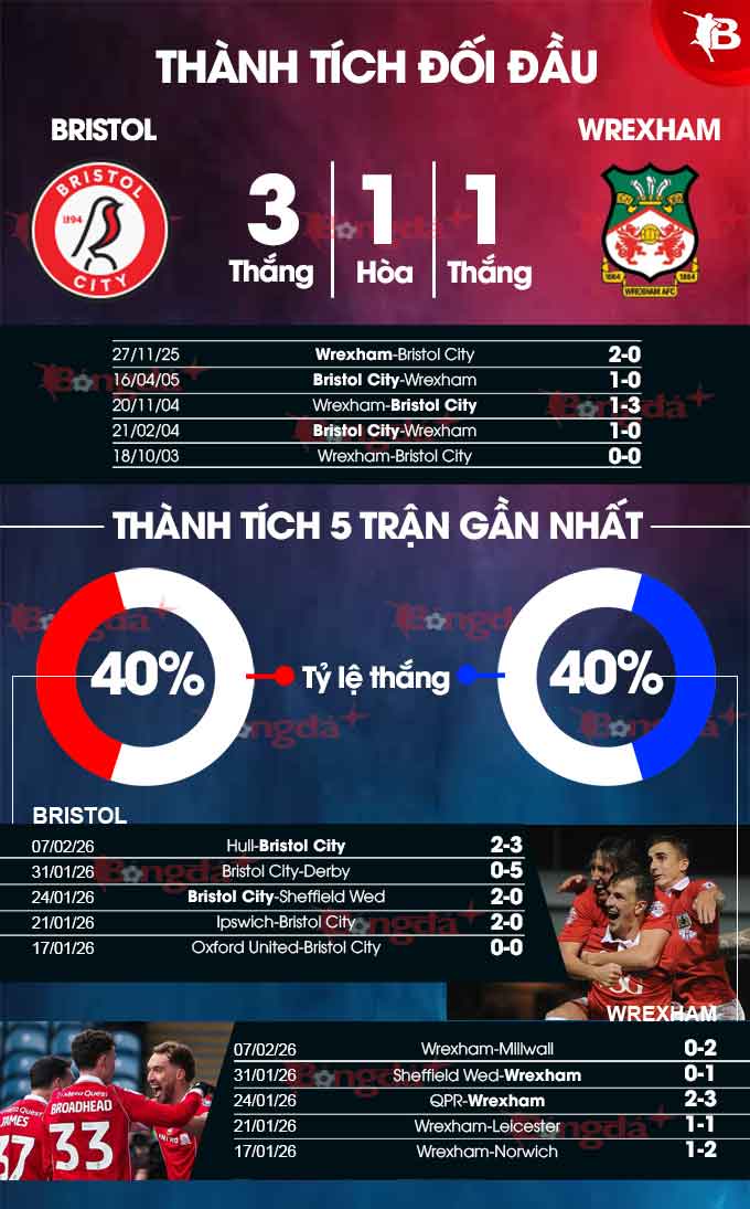 Trên sân nhà, Bristol City thắng 5/10 trận đã qua. Còn Wrexham đang chơi cực hay trên sân khách khi thắng liền 4 trận vừa xong. Đó là điểm tựa để họ tin tưởng sẽ đánh bại Bristol City.