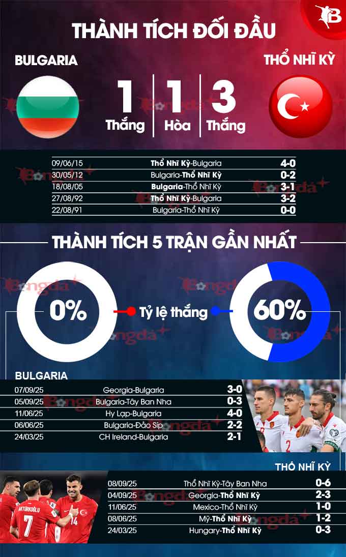 Xét về mọi phương diện, từ thành tích đối đầu đến phong độ gần đây hay tình hình lực lượng, Thổ Nhĩ Kỳ đều vượt trội và nhiều khả năng họ sẽ giành chiến thắng thứ ba liên tiếp trước Bulgaria mà không để thủng lưới bàn nào.