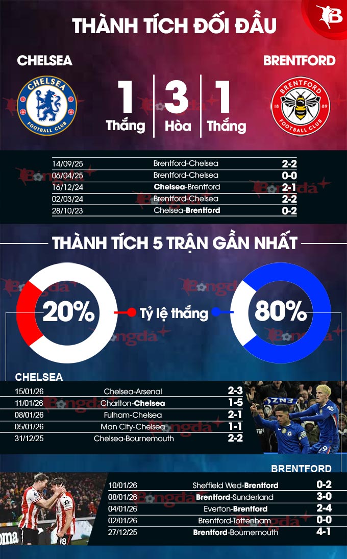 Với phong độ ấy, Chelsea không dễ đạt mục tiêu giành 3 điểm trước đội khách Brentford cuối tuần này. Xin nhấn mạnh rằng, Brentford chính là khắc tinh của đội bóng áo xanh. Điều đó được thể hiện qua kết quả của 8 cuộc đụng độ gần đây giữa 2 đội. Cụ thể, Brentford chỉ phải nhận 1 thất bại, còn lại họ hòa 4 và giành 3 chiến thắng trước Chelsea.