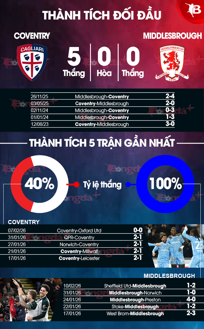 Phân tích phong độ Coventry vs Middlesbrough