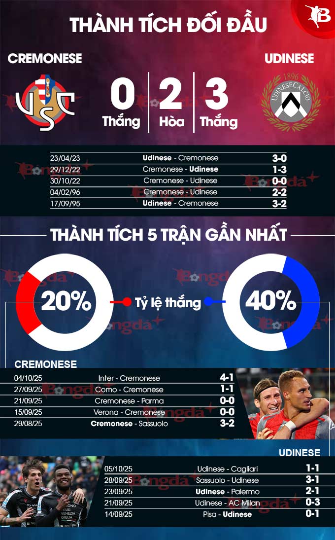 Phong độ xuất sắc của Udinese ở những chuyến hành quân xa nhà nhiều khả năng sẽ giúp họ có được chiến thắng trước Cremonese, đội bóng đang sở hữu chuỗi trận rất đáng thất vọng gần đây.