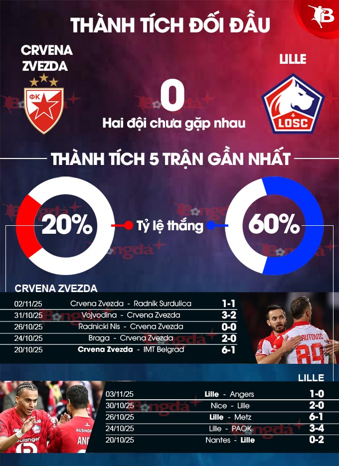 Phân tích phong độ Crvena Zvezda vs Lille