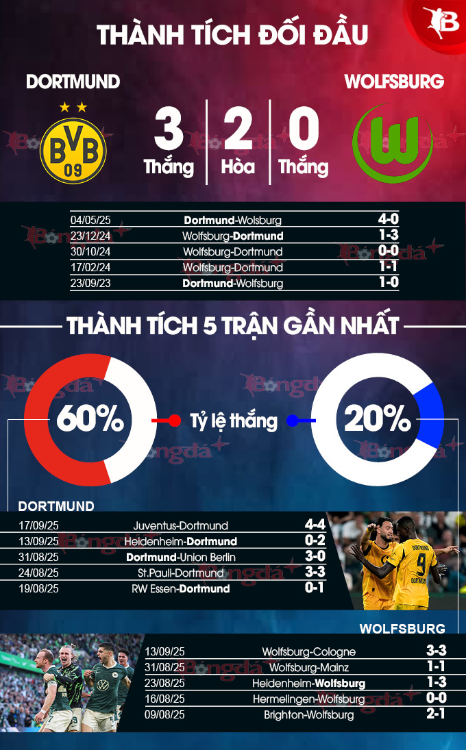 Wolfsburg là đối thủ thích hợp để Dortmund "trút giận". Ở 5 trận gần nhất, Dortmund thắng 3, hòa 2, còn Wolfsburg thắng 1, hòa 3, thua 1.