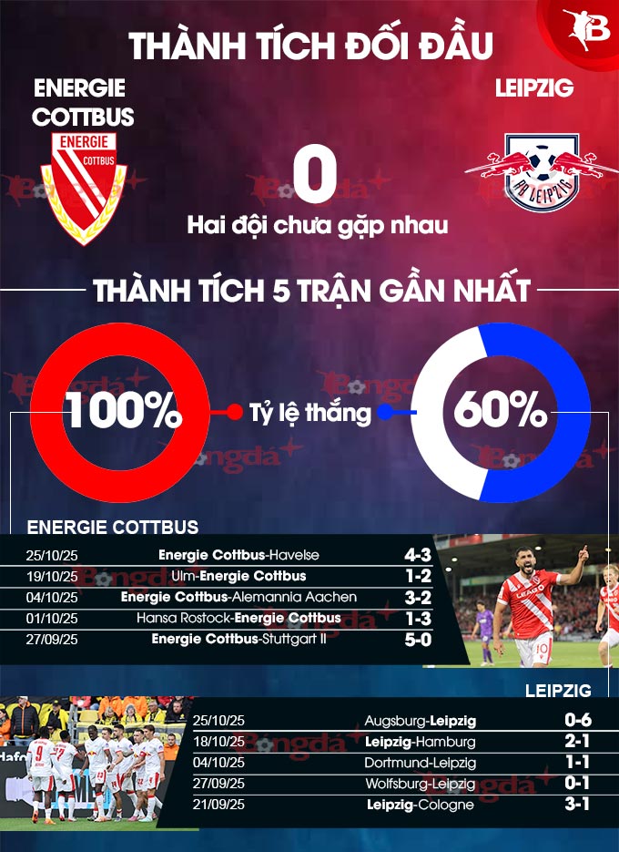 Tính riêng trên sân nhà, Energie Cottbus đang bất bại 7 trận gần đây, với 5 chiến thắng và 2 trận hòa. Phong độ này giúp họ hoàn toàn tự tin khi đón tiếp Leipzig và hy vọng lại một lần nữa gây bất ngờ trước đội bóng được đánh giá cao hơn.