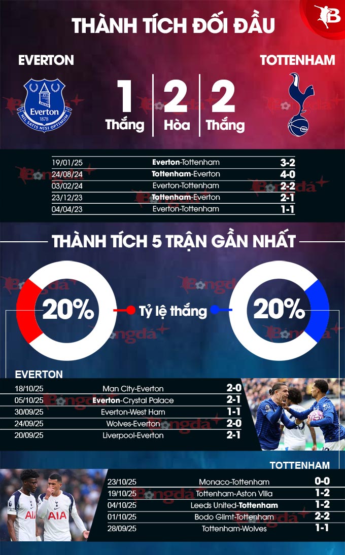 Thực tế cho thấy Tottenham đang là tập thể khó bị đánh bại trên sân khách. Tuy nhiên, đã khá lâu rồi họ không thắng tại sào huyệt của Everton nên sẽ chẳng bất ngờ nếu màn so T giữa 2 bên bất phân thắng bại.