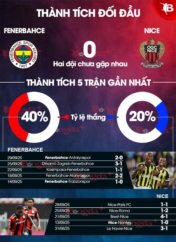 - Không đội nào giữ sạch lưới nhà: 3/4 trận gần nhất của Fenerbahce và 5/6 trận vừa qua của Nice đều khép lại mà không đội nào giữ sạch lưới nhà. Ngoài ra, 6/9 trận sân nhà gần nhất của Fenerbahce và 9/11 chuyến làm khách gần đây của Nice đều có ít nhất 1 bàn thắng cho mỗi đội.