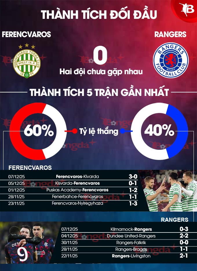 Vào cuối tuần trước, cả Ferencvaros và Rangers đều giành chiến thắng với cùng tỷ số 3-0 ở giải trong nước. Bây giờ, cả hai đội sẽ đối mặt ở vòng phân hạng Europa League 2025/26.
