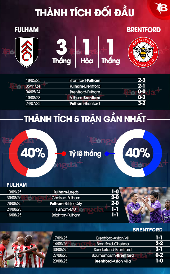 Fulham có lợi thế sân nhà và chưa thua tại Craven Cottage kể từ khi mùa giải mới khởi tranh. Còn với Brentford, họ thua 2 trận gần nhất làm khách ở Ngoại hạng Anh mùa này.