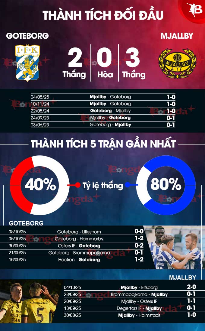 Trong khi Goteborg đang có dấu hiệu chững lại thì Mjallby vẫn duy trì được đà thắng như chẻ tre. Phải tiếp đón đội bóng có thành tích tốt nhất tại giải VĐQG Thụy Điển 2025, nếu Goteborg để thua trước sự chứng kiến của đám đông khán giả nhà thì đây cũng chẳng phải là chuyện lạ.