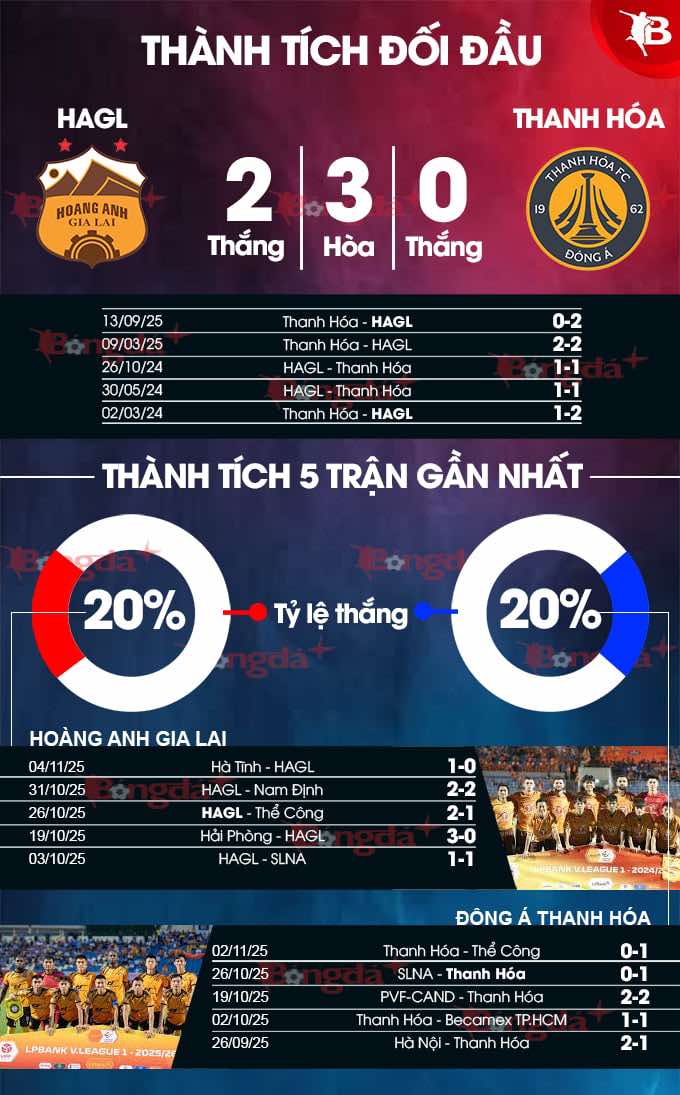 HAGL được xem là “khắc tinh” với Thanh Hóa. Theo đó, trong 10 lần so T gần nhất, HAGL duy trì thành tích bất bại trước đội bóng xứ Thanh, với 5 chiến thắng và 5 trận hòa.