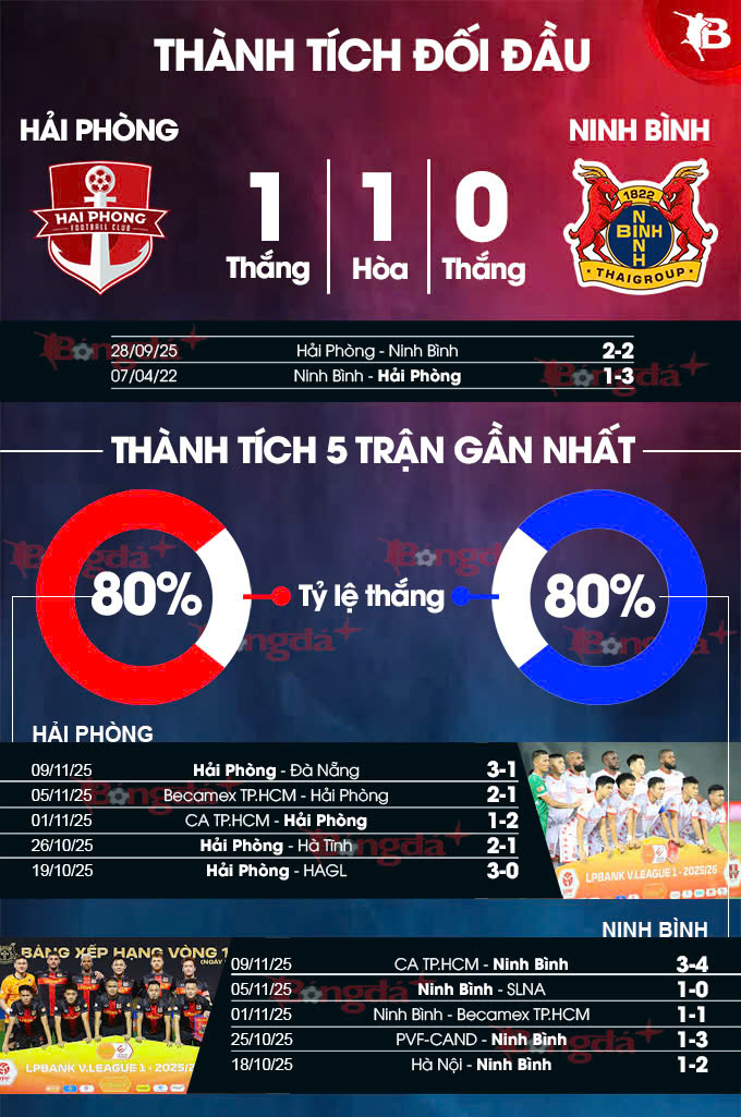Tại V.League 2025/26, Hải Phòng vẫn bất bại trên sân nhà với 5 trận thắng và 1 hòa. Như đã nói ở trên, Ninh Bình là đội bóng duy nhất có điểm tại sân Lạch Tray. Cuộc gặp gỡ ở vòng 1/8 Cúp QG hứa hẹn sẽ đầy kịch tính. Sẽ không ngoại trừ việc đôi bên phải giải quyết trận đấu bằng những pha sút phạt đền.
