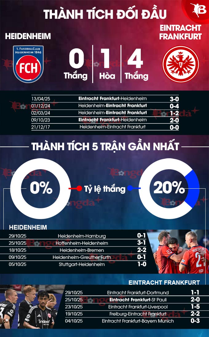 Phân tích dữ liệu chuyên sâu Heidenheim vs Eintracht Frankfurt