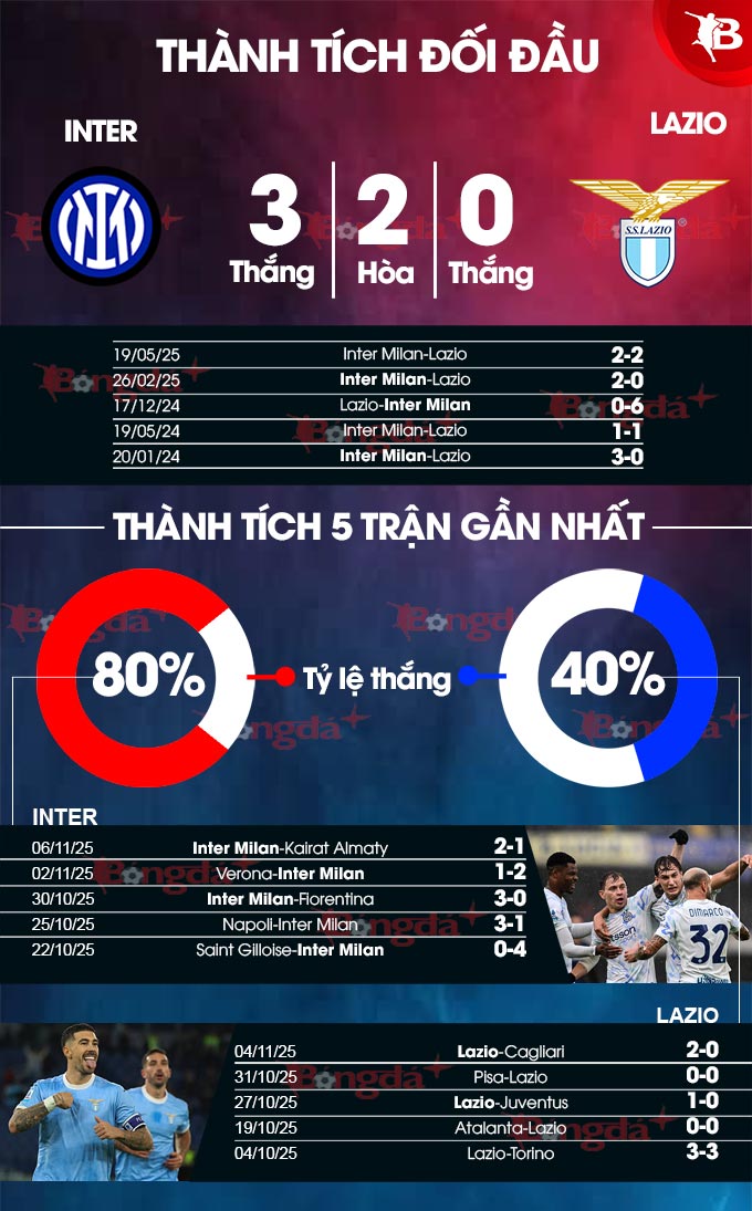Lazio đang rất tự tin khi sở hữu hàng thủ "bê tông", nhưng phía trước họ lại là Inter có khả năng khoan phá cực tốt. Với đà thắng như chẻ tre như hiện nay, Inter hứa hẹn sẽ khiến Lazio không thể ra về trong trạng thái lành lặn.