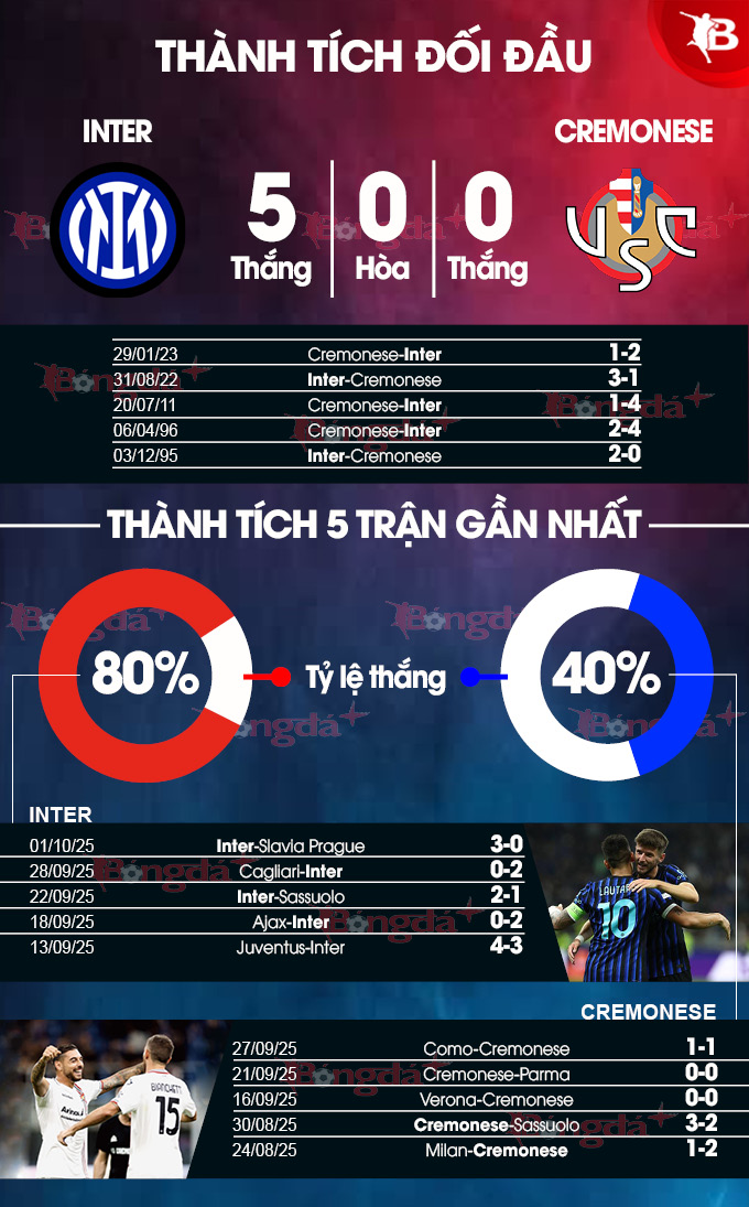 Dữ liệu chuyên sâu Inter vs Cremonese