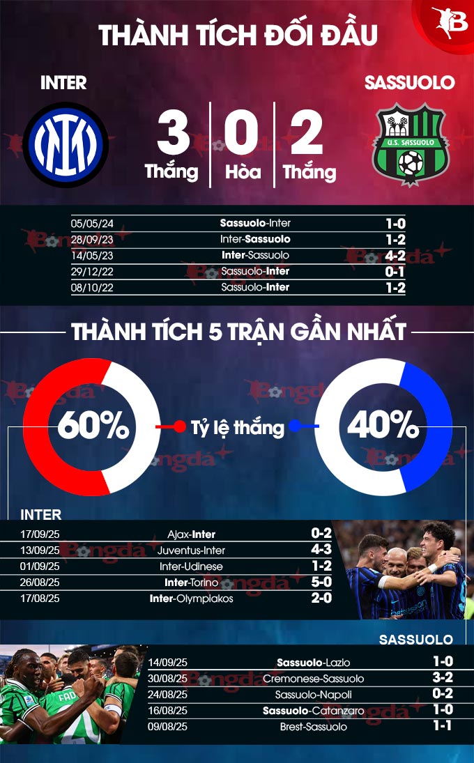 Sassuolo đủ khả năng gây khó khăn cực lớn cho Inter dù phải đá tại sân Giuseppe Meazza, điều đã nhiều lần xảy ra trong quá khứ ngay cả khi Inter đang ở giai đoạn phong độ đỉnh cao.