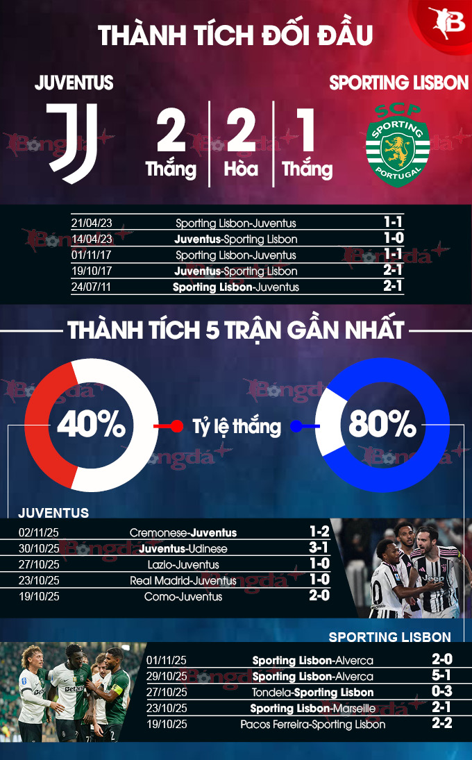 Phân tích dữ liệu chuyên sâu Juventus vs Sporting Lisbon