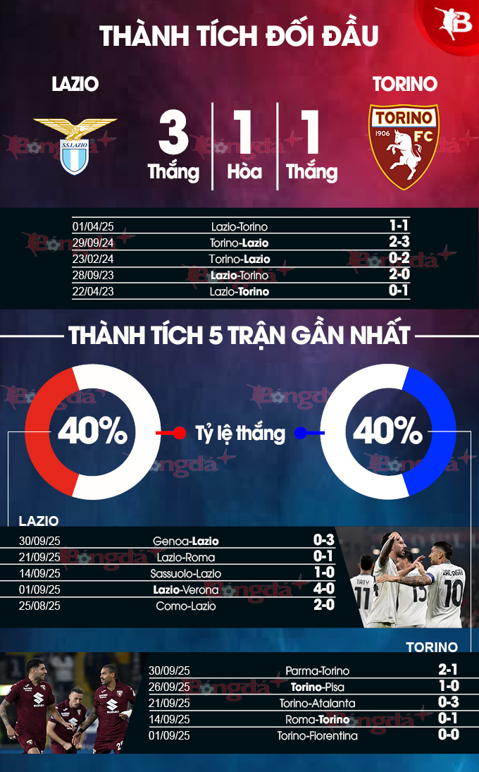 11 lần đối đầu gần nhất giữa đôi bên tính từ năm 2020 tới nay, chỉ đúng 1 lần đội chủ nhà giành chiến thắng. Với khá nhiều vấn đề chuyên môn hiện nay, Lazio sẽ không thể giành 3 điểm.