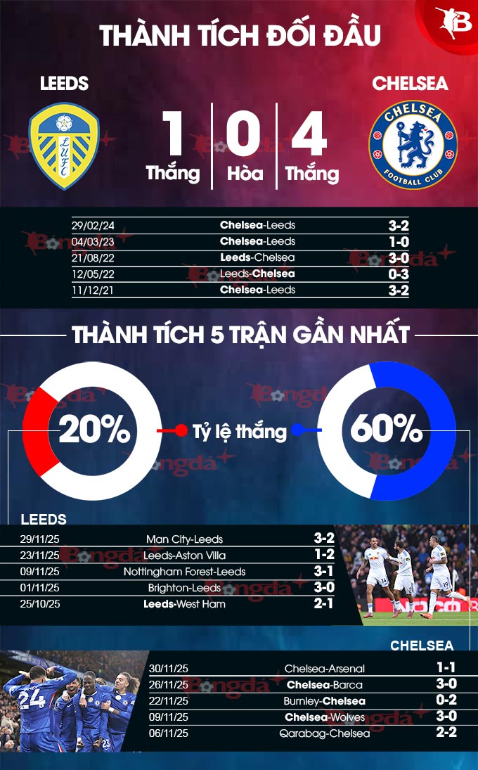 Những thất bại liên tiếp báo hiệu một trận đấu hứa hẹn sẽ khó khăn dành cho Leeds, nhất là khi họ còn phải chạm trán với "khắc tinh" Chelsea. Nên biết, trong 11 trận gặp Chelsea gần đây, Leeds chỉ thắng có 1 lần mà phải nhận tới 8 thất bại.