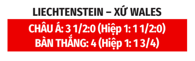 - Lẻ bàn thắng: 2/3 trận gần nhất của Liechtenstein và 5/6 trận gần đây của Xứ Wales đều khép lại với tổng bàn thắng là lẻ. Ngoài ra, cả 3 chuyến làm khách vừa qua của Xứ Wales cũng có tổng bàn thắng không chia hết cho 2. Trận này khó có ngoại lệ.