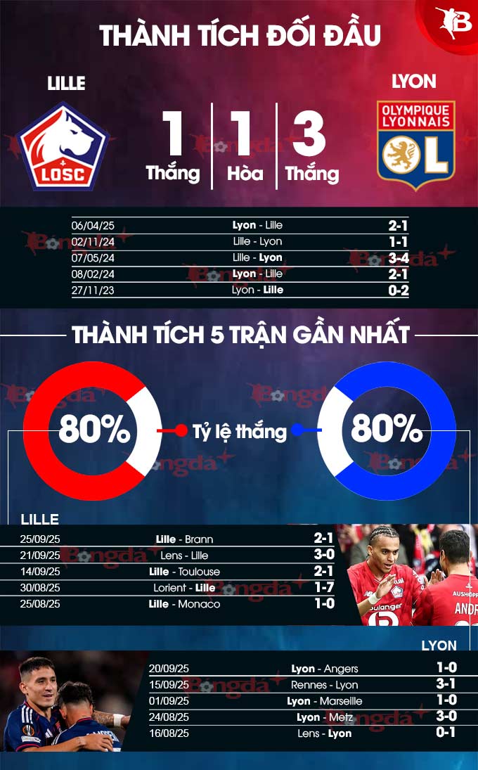 Trong 5 lần tiếp đón Lyon gần đây, Lille đều bất lực trong việc tìm kiếm chiến thắng. Quy luật này nhiều khả năng sẽ lặp lại khi Lille phải đối mặt với Lyon đang rất hưng phấn nhờ chuỗi trận thắng như chẻ tre.