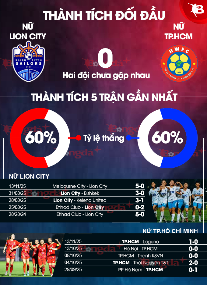 Ở trận đấu với Melbourne, do đối thủ quá mạnh nên Lion City gần như chưa có pha bóng tấn công nào nguy hiểm, nhưng ở trận đấu với CLB TP.HCM thì khả năng sẽ khác. Trước mắt, cô trò HLV Kim Chi cần tập trung cho mục tiêu 3 điểm trước khi nghĩ đến những vấn đề khác như giành một trận thắng đậm để có thể vượt lên dẫn đầu bảng. Ở cuộc so T này, khả năng CLB nữ TP.HCM sẽ có thêm một trận thắng nữa.