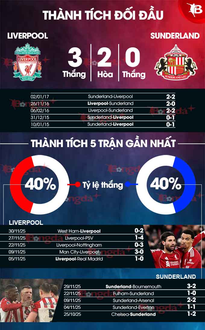Phân tích phong độ Liverpool vs Sunderland