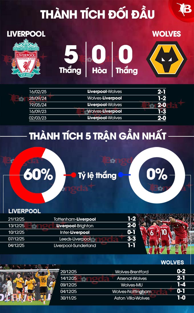 Liverpool trở lại Anfield với phong độ đang lên cao trên mọi đấu trường, trong khi Wolves chịu áp lực sau chuỗi trận khó khăn tiếp tục bộc lộ những vấn đề về cấu trúc đội hình. Khoảng cách về phong độ cũng như đẳng cấp là rõ ràng, và trận đấu này sẽ là một bài kiểm tra về sức chịu đựng của Wolves hơn là sự cân bằng đội hình.
