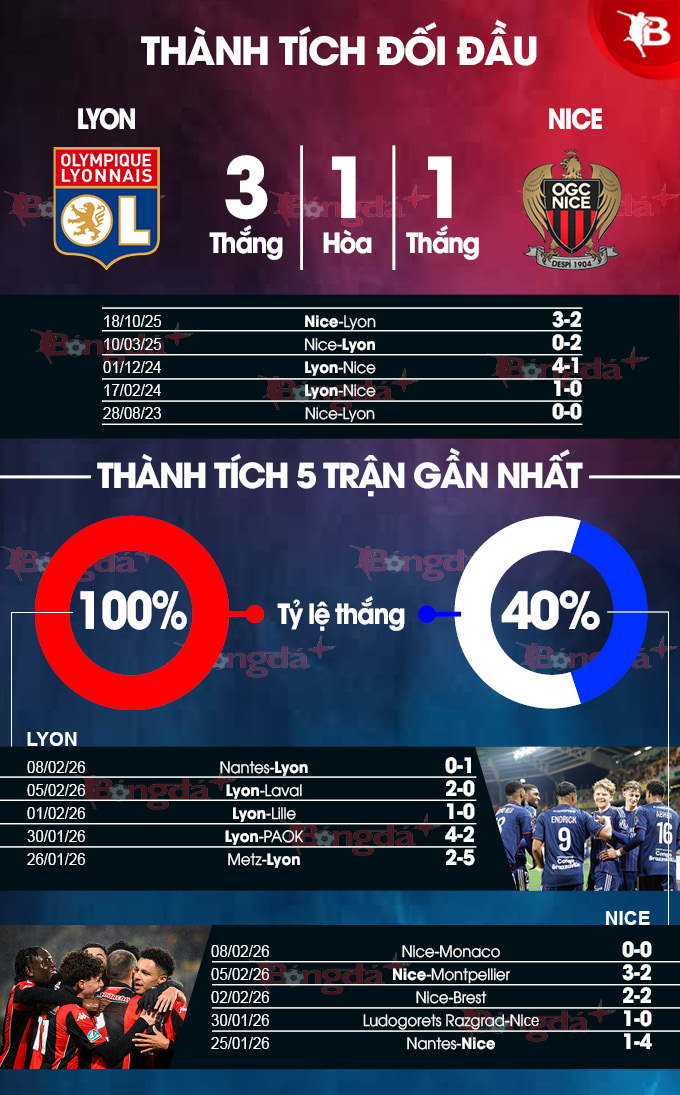 Vì vậy, đụng độ Nice ở thời điểm hiện tại là cơ hội vàng để thày trò HLV Paulo Fonseca chứng minh sức mạnh đích thực của họ. Một chiến thắng trước Nice chưa đủ để Lyon leo lên vị trí thứ 2 BXH, nhưng sẽ nâng chuỗi toàn thắng của họ lên con số đáng ngưỡng mộ, 13 trận.