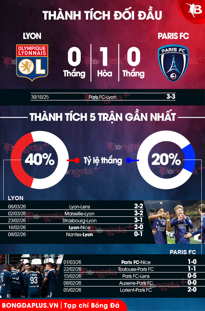 Trên sân nhà, Lyon bất bại ở 10 trận gần nhất (thắng 9, hòa 1 - tính trong 90 phút). Còn Paris FC, họ thắng 4/10 trận đã qua trên sân khách. Với thực lực hiện có và nắm nhiều lợi thế trong tay, Lyon hoàn toàn có thể giành chiến thắng trước Paris FC.