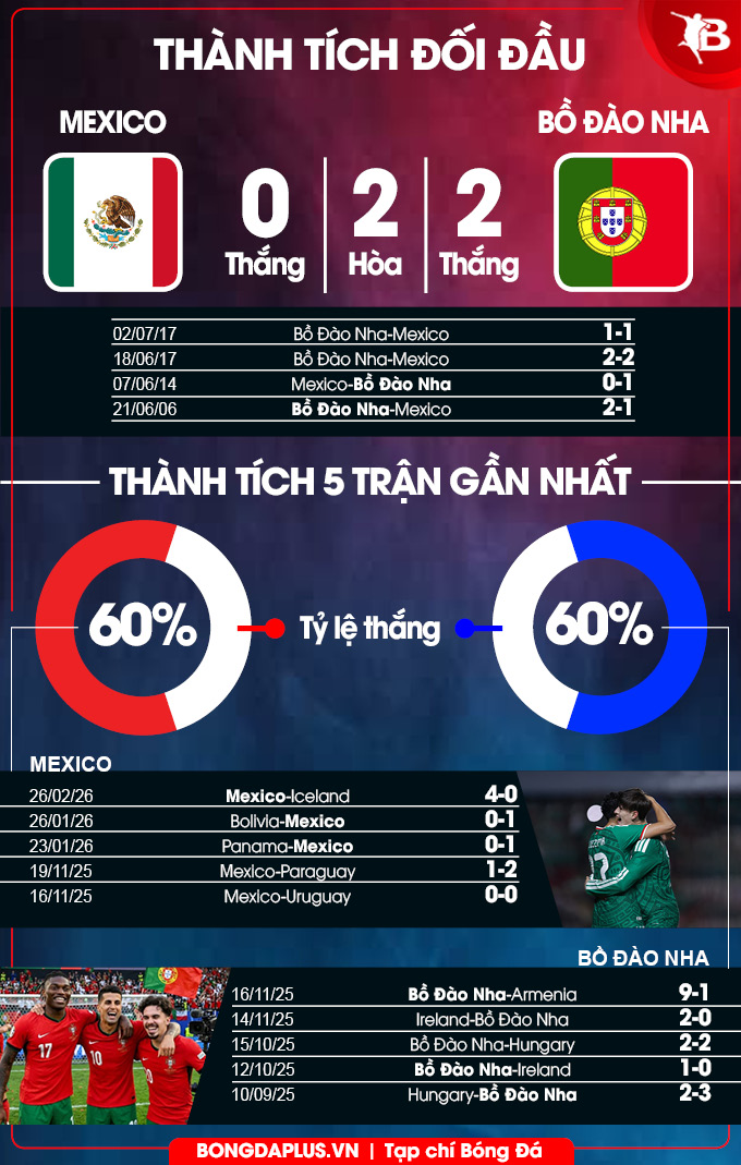 Phân tích phong độ Mexico vs Bồ Đào Nha